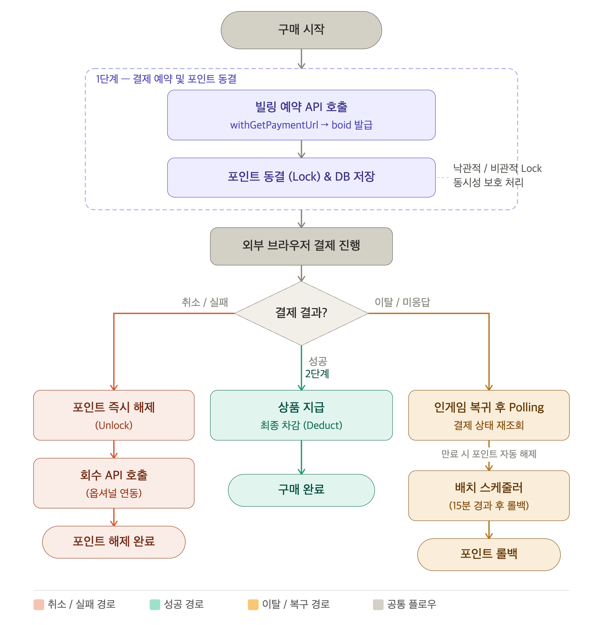- 1단계: 결제 예약 및 포인트 동결 (Lock)